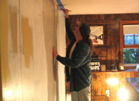 in the process of painting over the drab 1970's era wood paneling in my basement